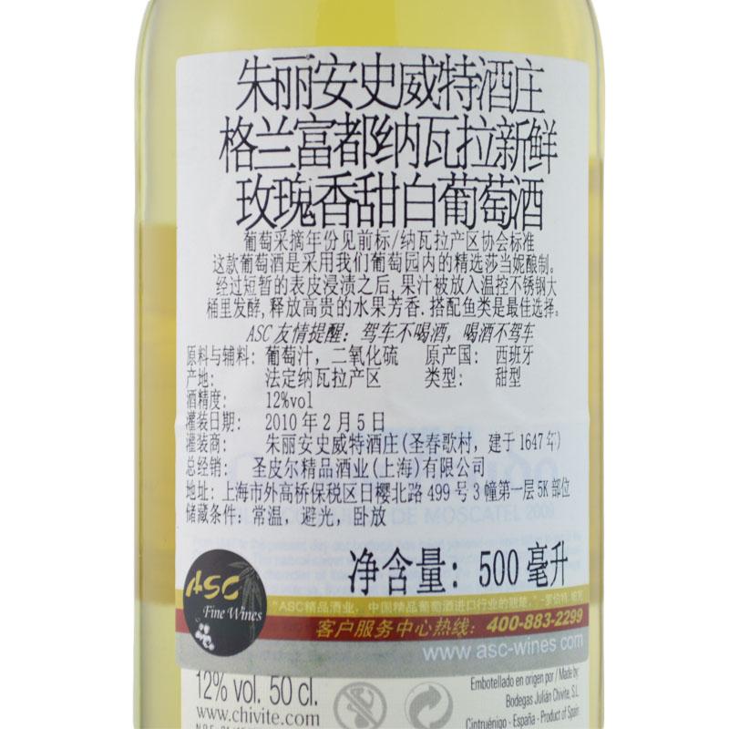 朱丽安史威特酒庄格兰富都新鲜玫瑰香甜酒500ml(Bodegas chivite Gran Feudo Dulce De Moscatel 500ml (Sweet))