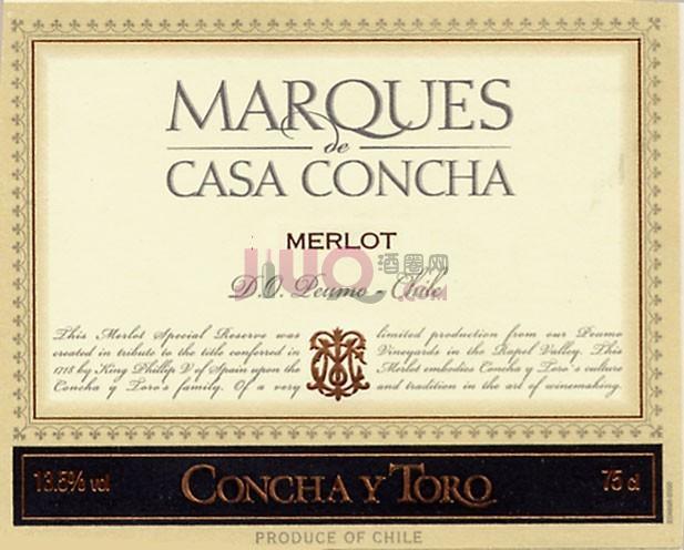 干露酒厂侯爵系列梅洛葡萄酒(智利瑞贝尔山谷)(Concha Y Toro Marques de casa concha merlot)