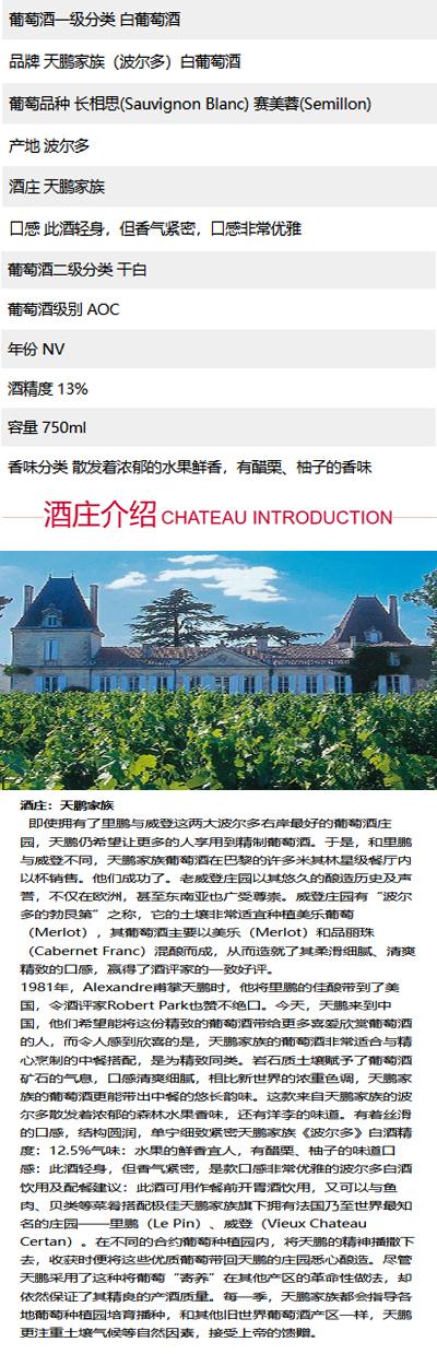 天鹏家族(波尔多)白葡萄酒(Terra Burdigala Bordeaux White)