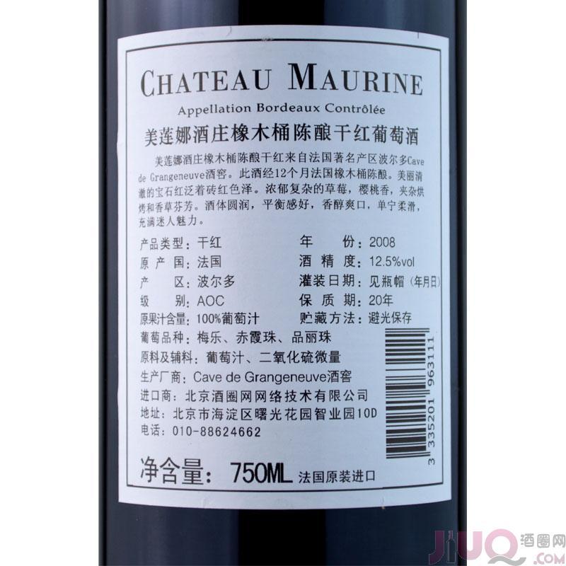 美莲娜酒庄橡木桶陈酿红葡萄酒+ASC单支礼盒(Chateau Maurine Bordeaux)