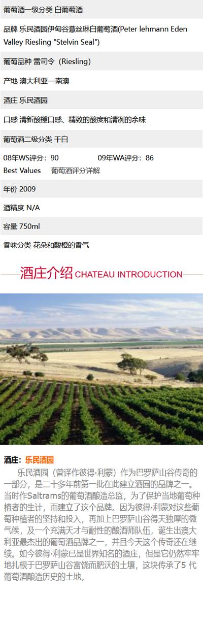 乐民酒园伊甸谷薏丝琳白葡萄酒(Peter lehmann Eden Valley Riesling "Stelvin Seal")