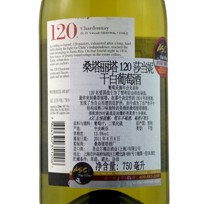 桑塔丽塔120莎当妮白葡萄酒750ml六支组合优惠装