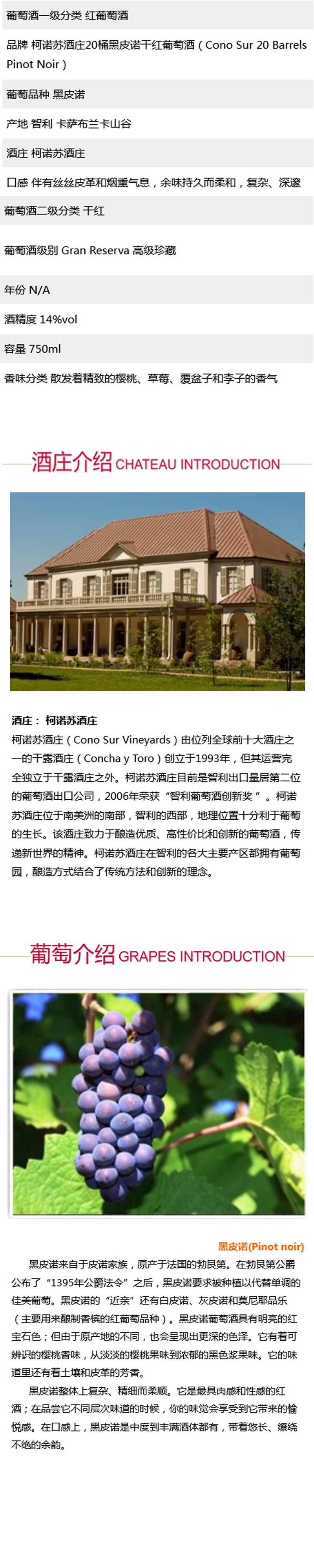 柯诺苏酒庄20桶黑皮诺干红葡萄酒(Cono Sur 20 Barrels Pinot Noir)